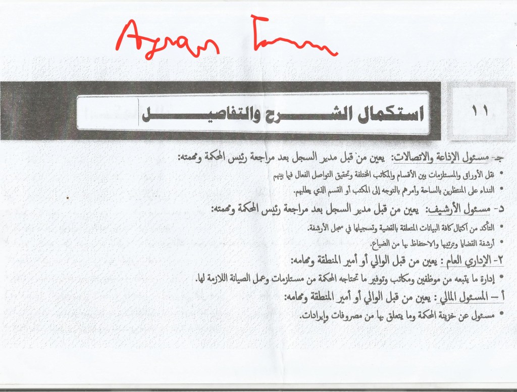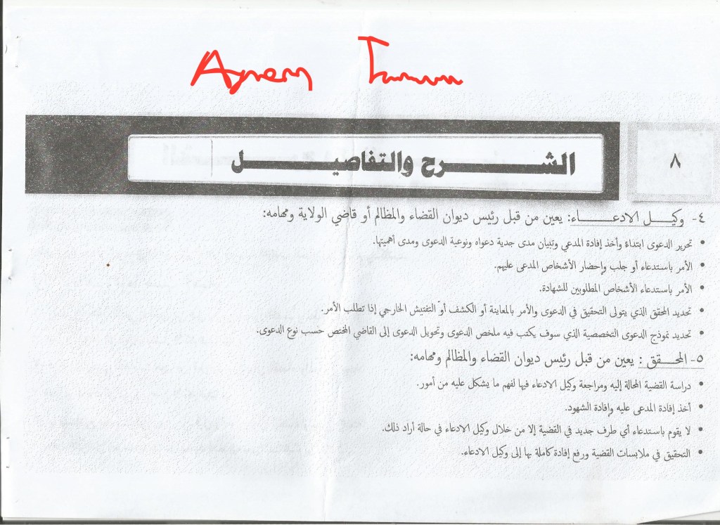 4. Prosecutor: appointed by the head of the Diwan al-Qada wa al-Madhalim or judge of the wilaya and his tasks are: