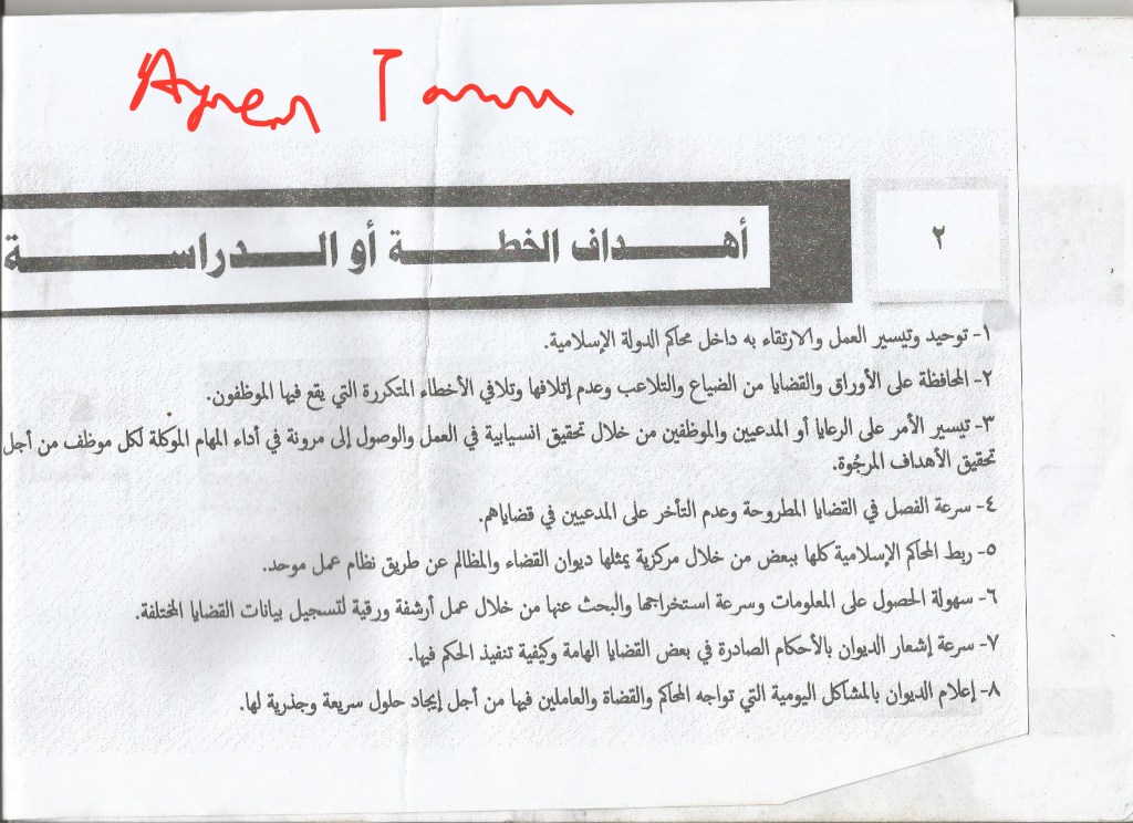 Proposal to develop the mechanism of work inside the Islamic courts and make document archives for them.