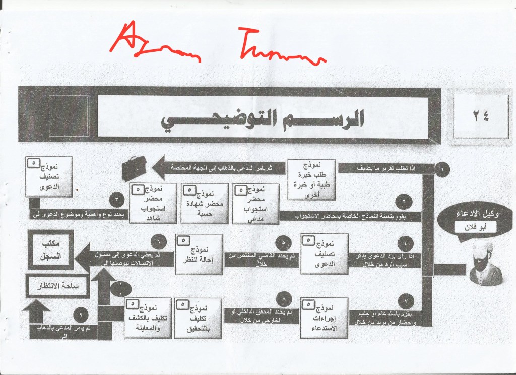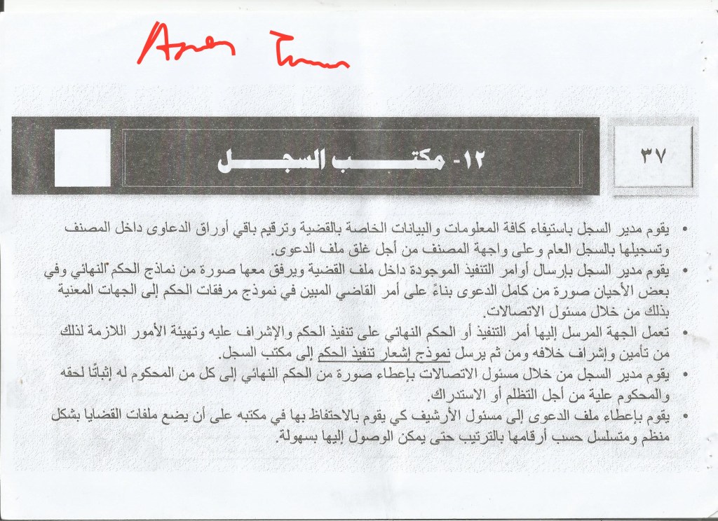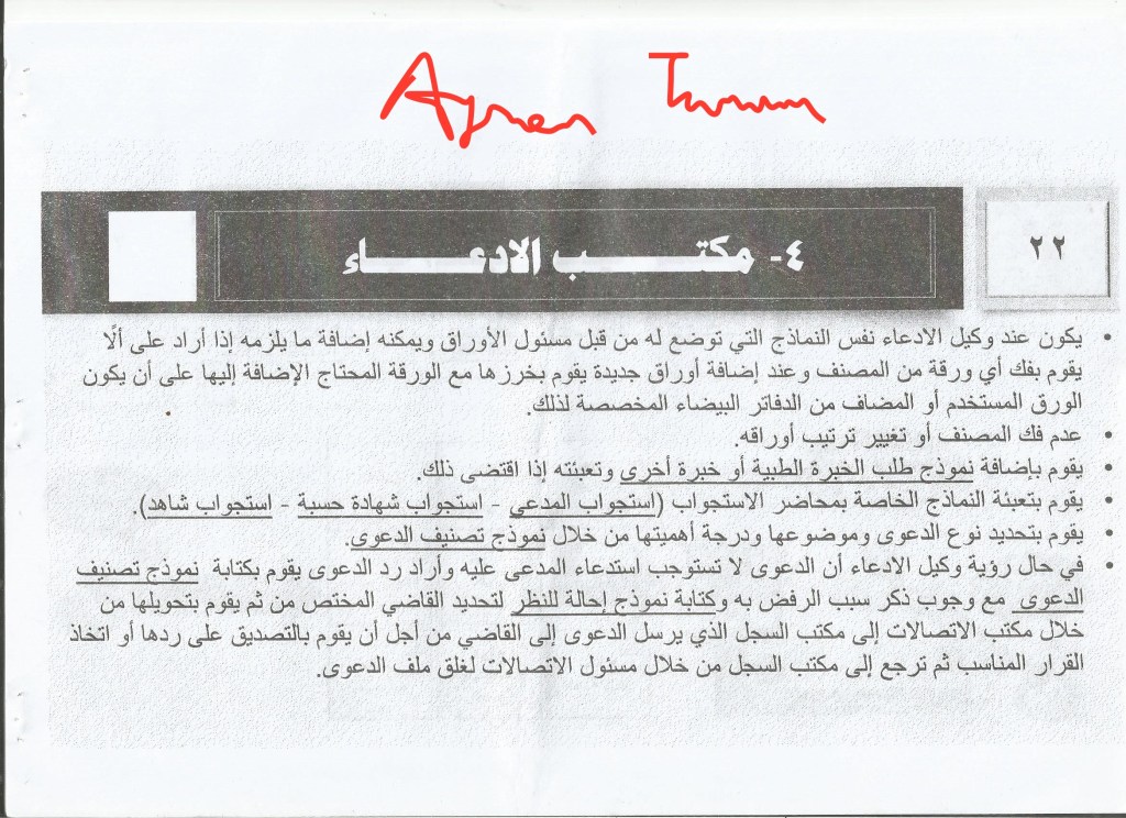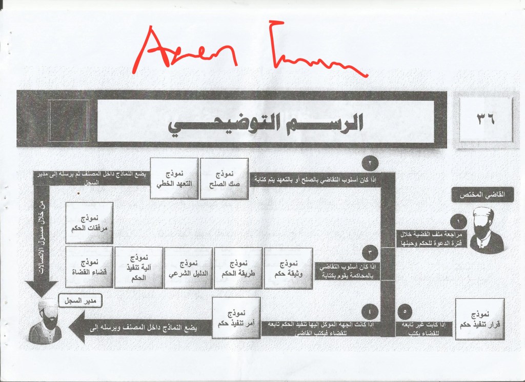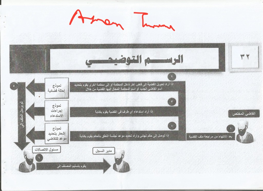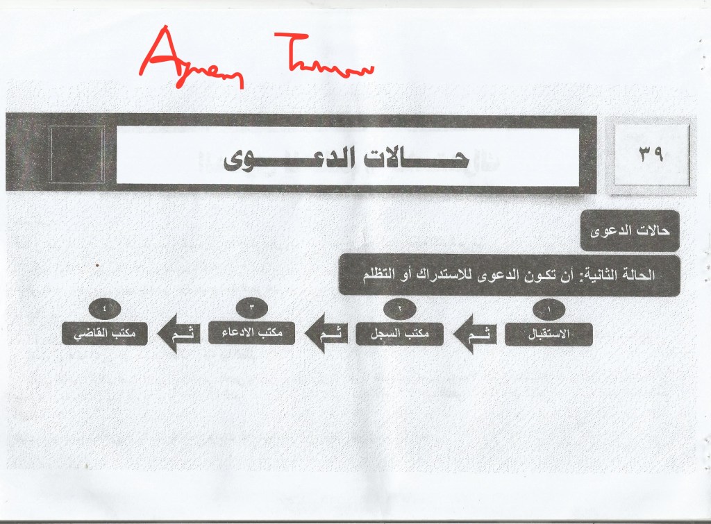 4. The judge’s office: first: the case comes to the relevant judge who refers to the prosecutor in it or a specific judge according to his view, in order to take the appropriate decision on the case and in the event a new ruling is issued, it requires an implementation commission, so its implementation is done through the mechanism of implementation referred to in the scenario of the case for the first time or the judge directly informs the judge against whom the case of appeal is referred of the new ruling.