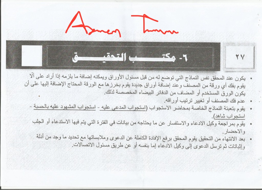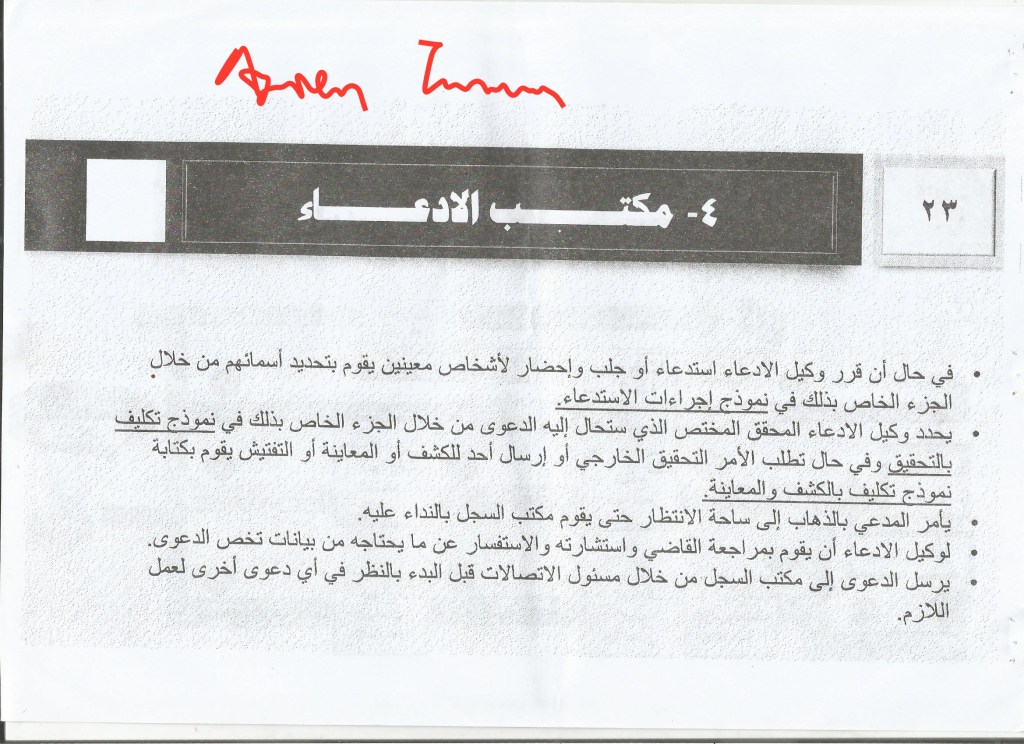 3. The prosecution office: the prosecutor defines what the case needs from procedures, whether it is for redress or for appeal, and then he specifies the party to which the case will be referred: i.e. the relevant judge, in order to judge on it. And he defines that through the form of referral for review, in which he specifies either the judge or the court according to his view.