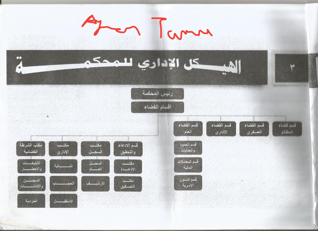1. Head of the court (the judge): appointed by the head of the Diwan al-Qada wa al-Madhalim and his task is to judge on disputes referred to him and to issue the final rulings on them.