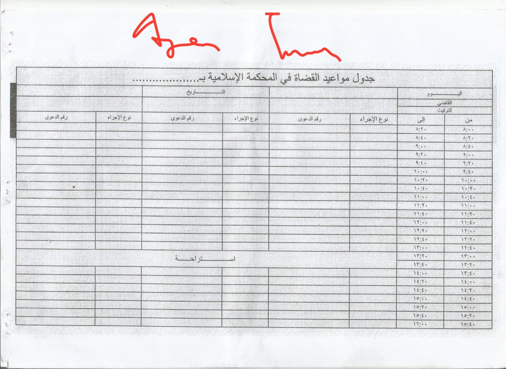 Timetable of appointments of the judges in the Islamic court in…
