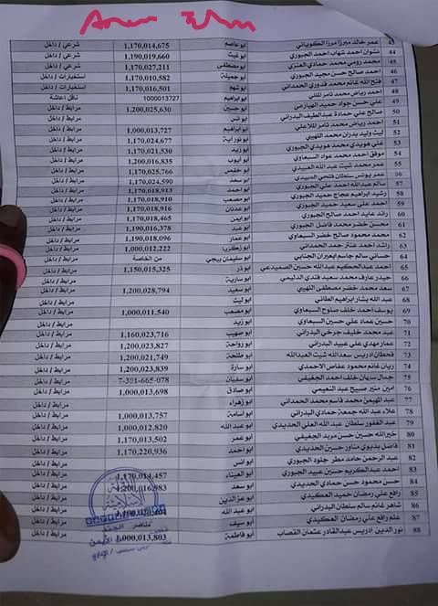 | 19 | Haitham Yunis Mari’i Hassan al-Hamdani | Abu Hussein | 1,170,012,157 | Water transporter/mobile |