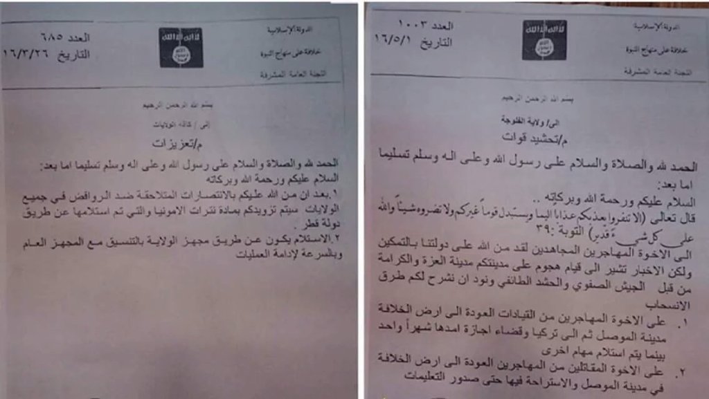 [Comment: there are numerous signs of forgery in these documents. First, the Gregorian dating is marked in an abbreviated form (with 2016 marked as 16) and no indication is given that this is Gregorian dating and no hint is given of the Hijri dating. In addition, by the time these documents were supposed to have been issued, the General Supervisory Committee had become the Delegated Committee. Moreover, the documents contain some familiar tropes of local Iraqi discourse such as the idea that Turkey and Qatar have been supporting the Islamic State].
