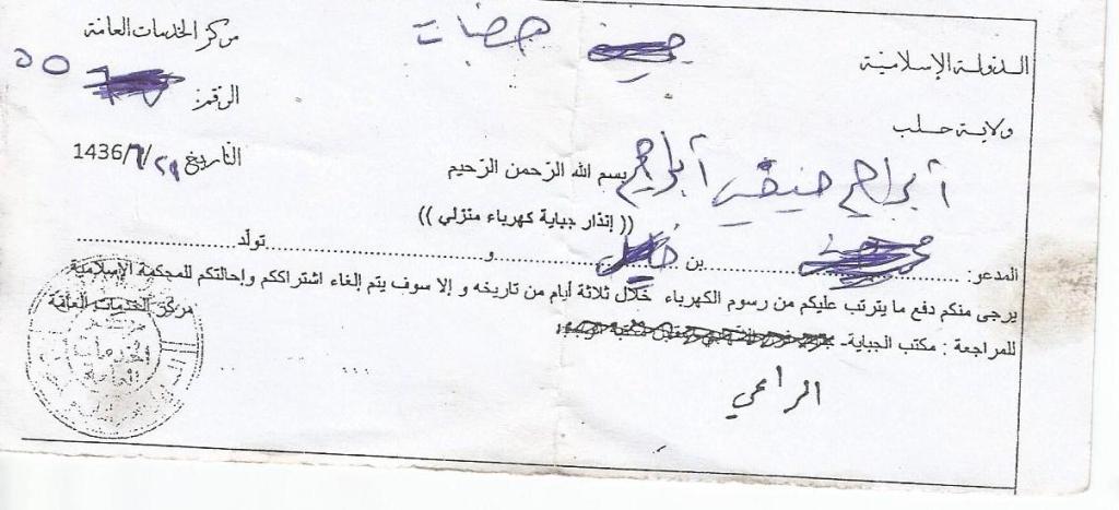 Please pay your pending electricity fees within 3 days from the date of this note. Otherwise, your subscription will be cancelled and you will be referred to the Islamic court.