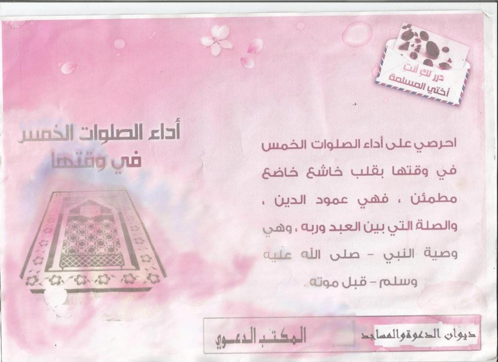 Be keen to perform the five prayers at their time with a humble, submissive, assured heart, for they are the pillar of the religion, and the link that is between the servant and the former’s Lord, and it is the testament of the Prophet (SAWS) before his death.