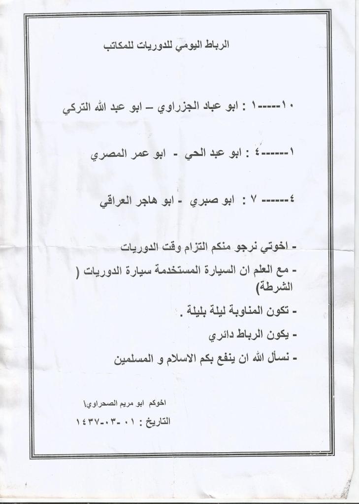 Daily ribat for the patrols of the offices