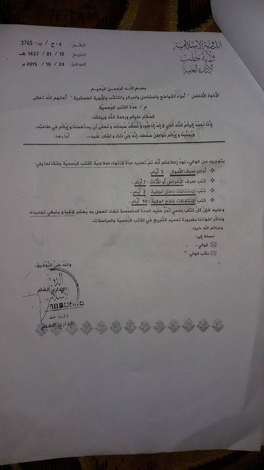 By directive from the wali, we would like to inform you that a period of duration until expiry for official letters has been set as follows:
