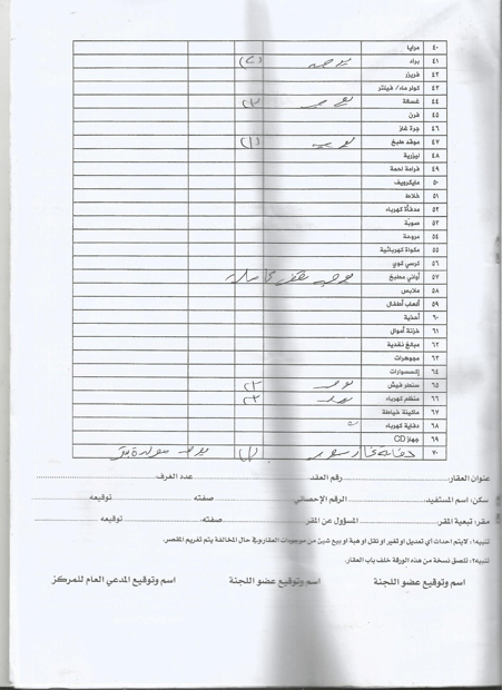 | No. | Item listed | Characteristics Type/brand | No. | Item’s state | Notes |