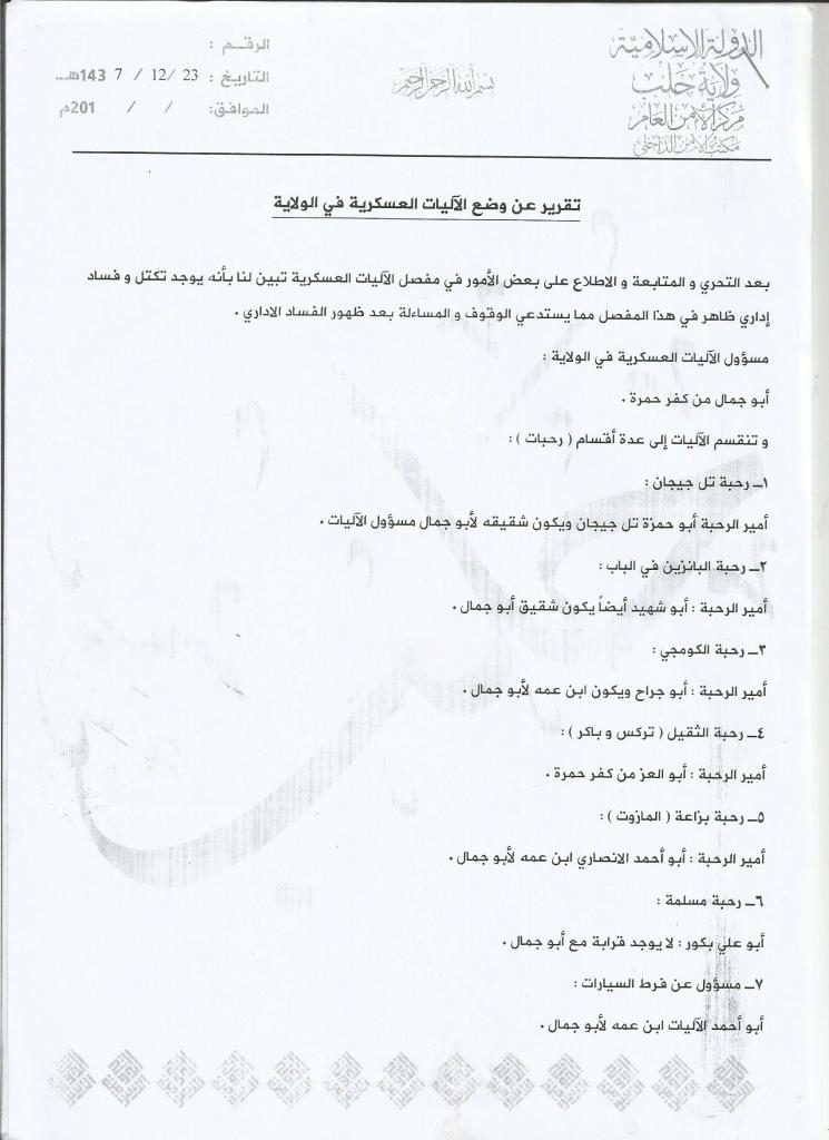 The amir of this department is Abu Hamza Tel Jijan, whose brother is Abu Jamal, the official for the vehicles.