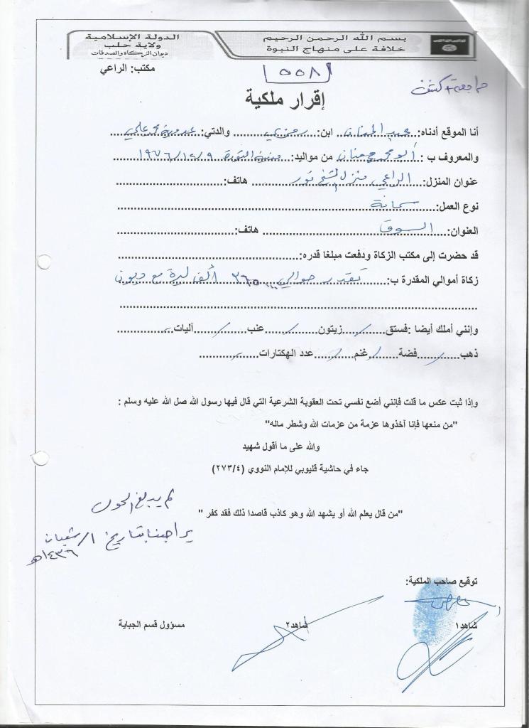 Islamic State Wilayat Halab Diwan al-Zakat wa al-Sadaqat Office: al-Ra’i