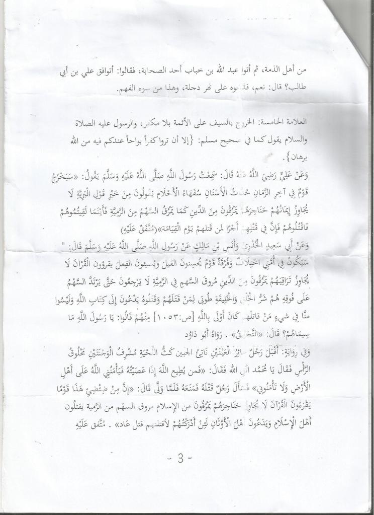 On the authority of Ali (may God be pleased with him): he said: I heard the Messenger of God (SAWS) saying: ‘A people will come come out at the end of time, who are young in age and foolish in their thinking, speaking words of the best words of creation. Their faith will not go beyond their throats. They will pass through this religion as the arrow passes through its target. So kill them wherever you find them, for on the Day of Judgement there is a reward for whoever kills them’ (agreed upon).