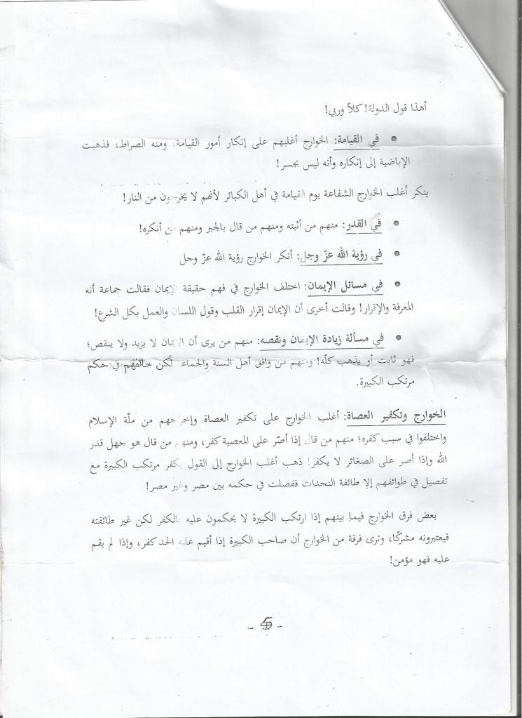 . On issues of faith: the Khawarij have disagreed on the understanding of the truth of faith, for some of them say it is knowledge and acknowledge! Others of them have said that faith is acknowledgement of the heart, pronouncement of the tongue and implementing the entire law!